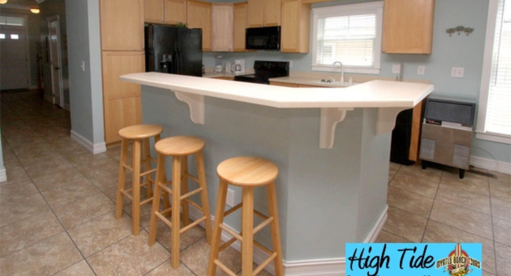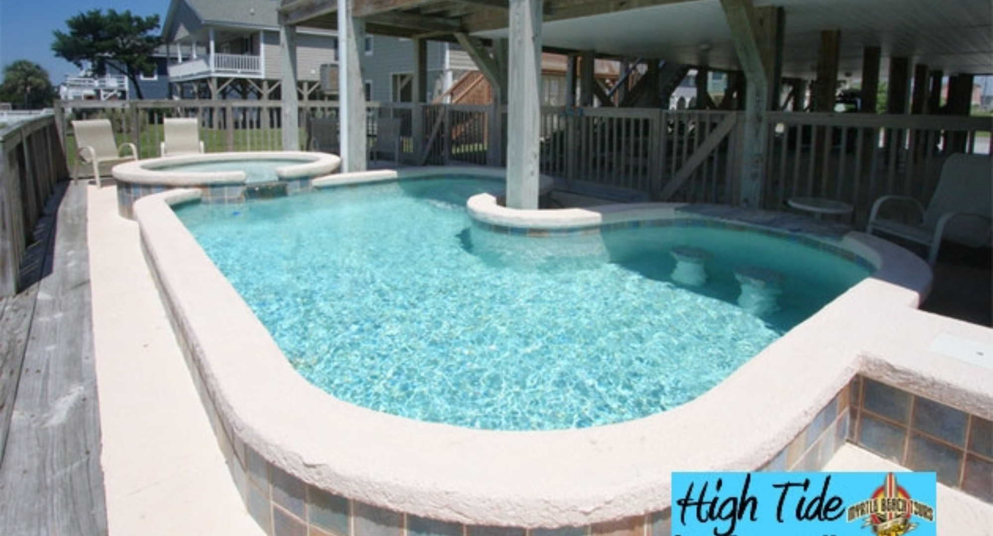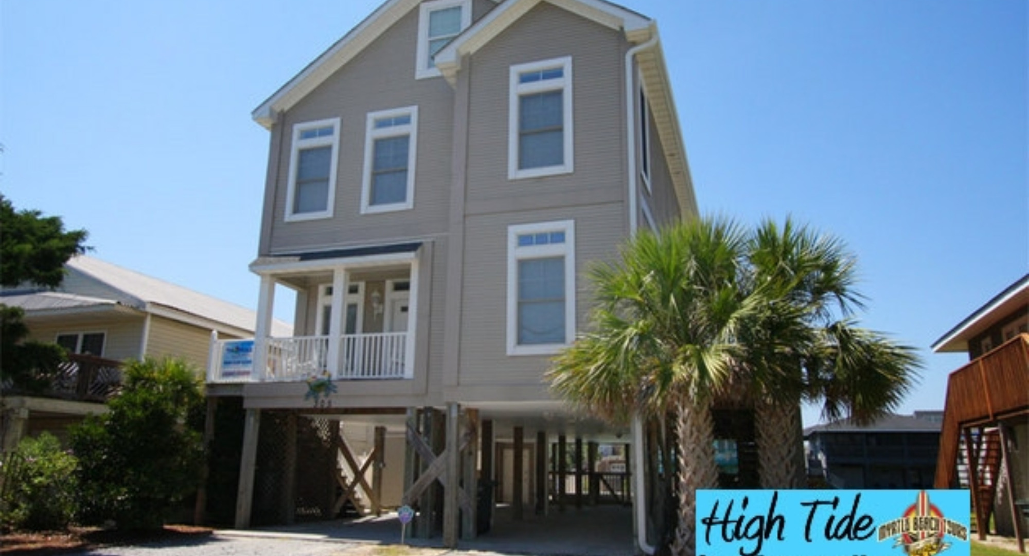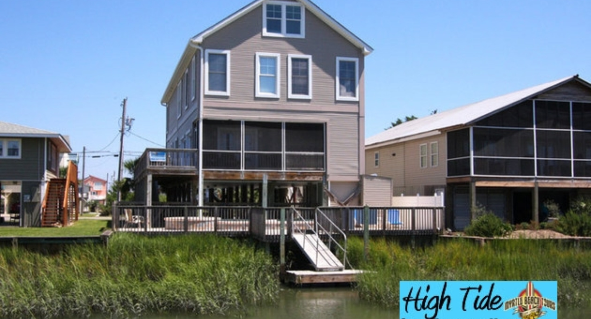 A 1st class find, waterfront on a channel of the Cherry Grove Inlet two short blocks from the beach. With 7 bedrooms, 5 full and 2 half-baths, it's perfect for families and friends to share. Students will enjoy the top-floor loft with its books and games. It has a superbly equipped kitchen and a spacious living area.