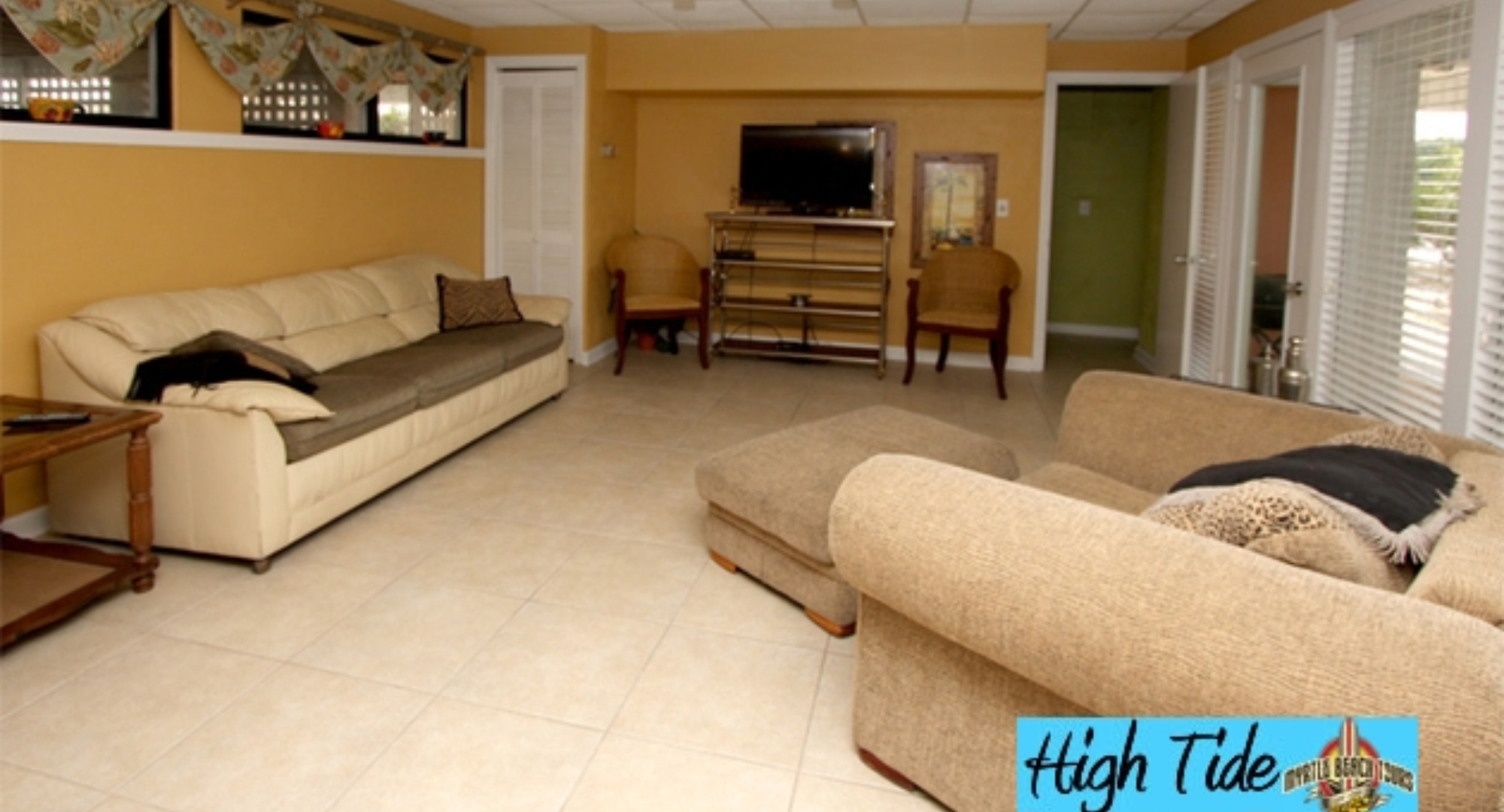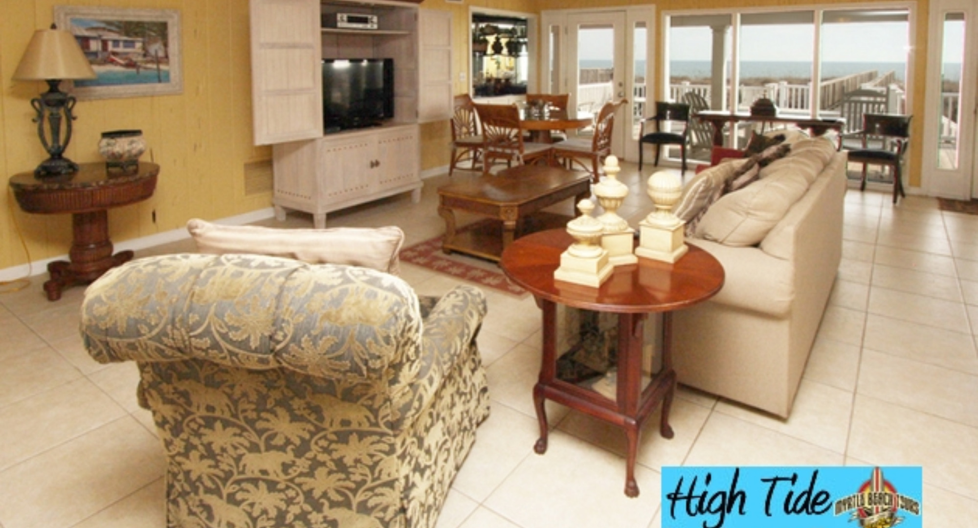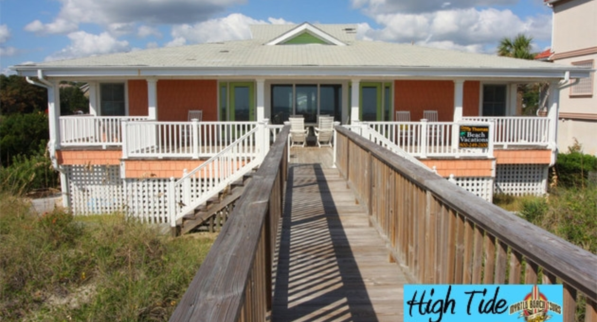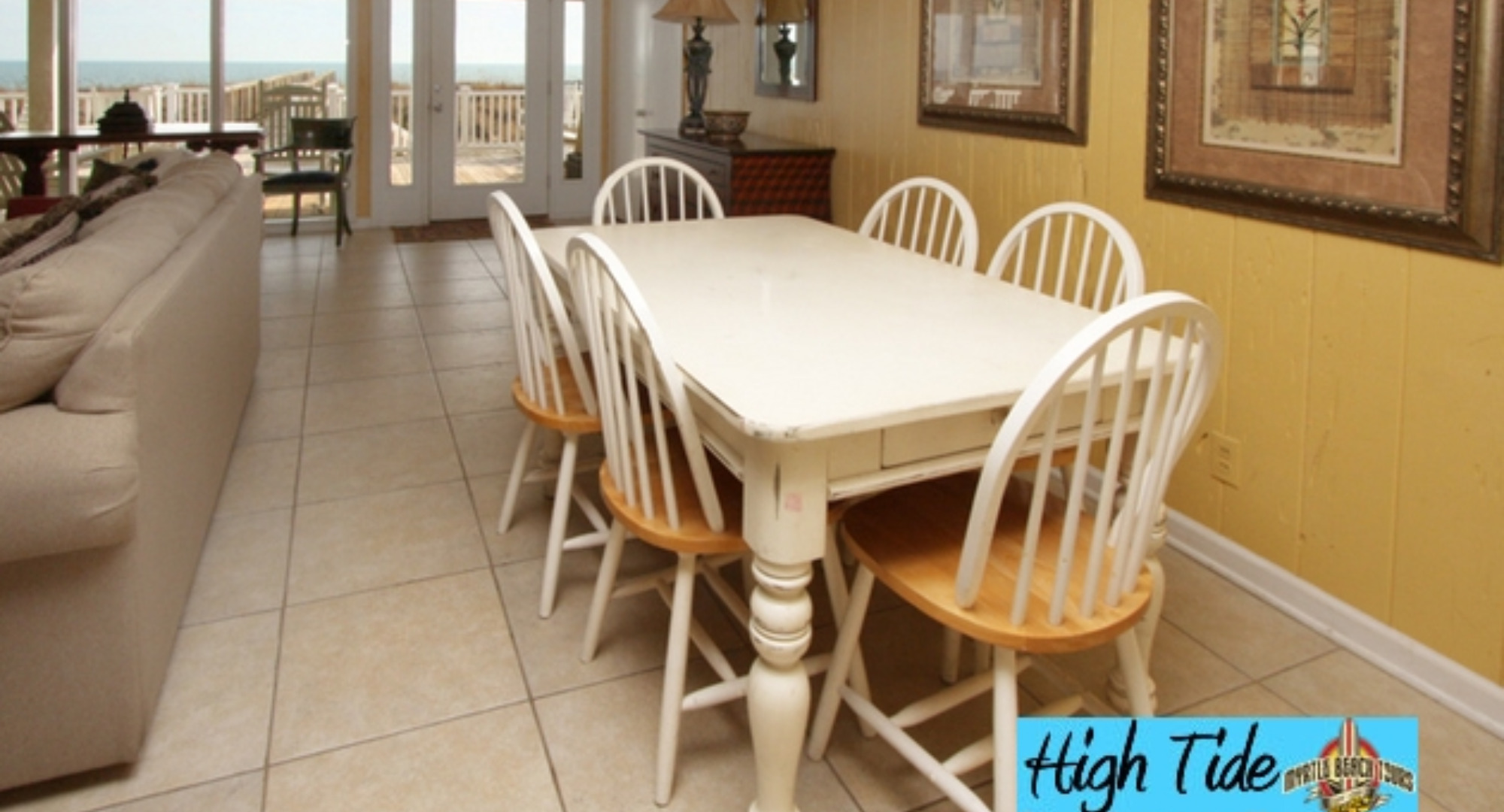 Oceanfront accommodations in the exclusive Tilgman Beach area for your team. With six total bedrooms, four full baths and one half-bath, this North Myrtle Beach vacation home is spacious enough for your team. *There are two bedrooms downstairs and four bedrooms on the main level with floor to floor access via exterior stairs only.