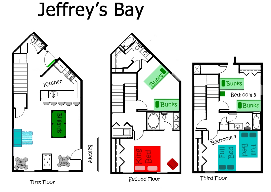 Jeffrey's Bay is a 4 bedroom townhouse for your beach week! Billiards Table in the living room with a balcony overlooking the pool. One smart TV on main floor living room for you to use your accounts to stream tv. *All units have similar furnishings photos may not be of the exact unit *Towels seen in image are from our $25 per bed linen package*