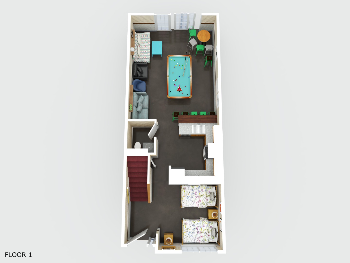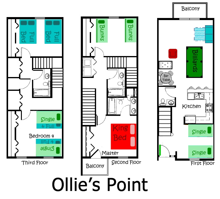 Ollie's Point is a 4 bedroom townhouse that sleep 18. There's a billiard table in the living room and loads of space to hang out with your crew. One smart TV on main floor living room for you to use your accounts to stream tv. *All units have similar furnishings photos may not be of the exact unit*