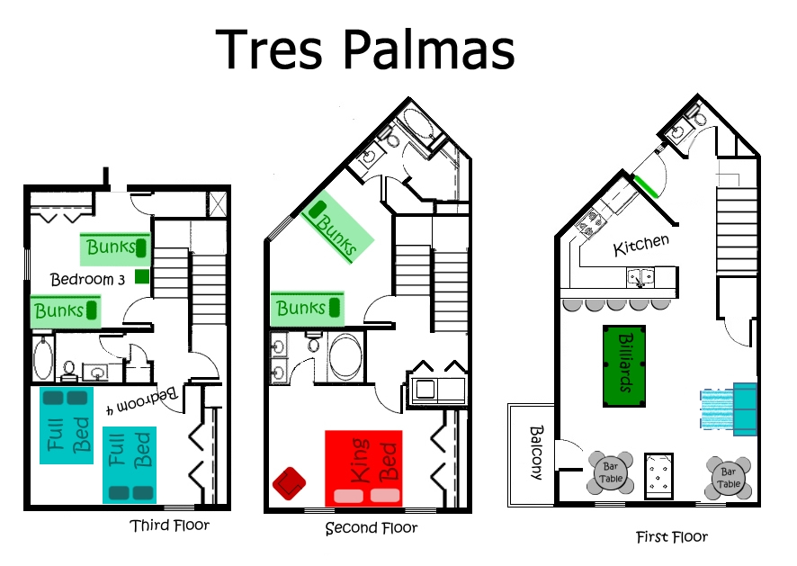 Tres Palmas is a 4 bedroom townhouse for your beach week! Billiards Table in the living room with a balcony overlooking the pool. One smart TV on main floor living room for you to use your accounts to stream tv. *All units have similar furnishings photos may not be of the exact unit*