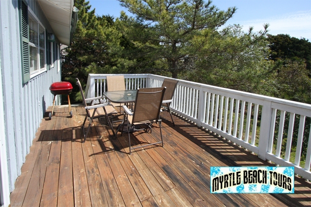 OUTDOOR FEATURES include a covered porch and a sundeck. There's an outside beach shower and a grill for backyard cookouts. This is a non-smoking vacation accommodation and motorcycles are not permitted. Sleeping up to nine, it has: BR1-1 Double, 1 Single; BR2-2 Singles; BR3-2 Singles; BR4(down)-1 Double.