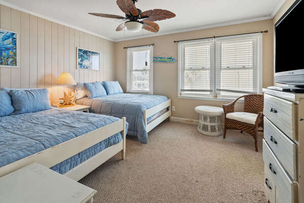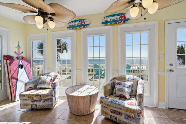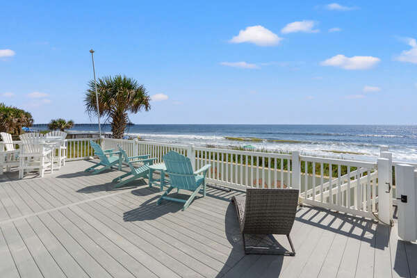 House 1022 - Seaworthy and Salty: The Ultimate Frisbee Team's Slice of Paradise in North Myrtle Beach** Get ready for the best time of your life in this laidback, oceanfront haven where the sun, sand, and Frisbee are your daily agenda! **Property Highlights:** - **Epic Ocean Views:** Rise with the sun and catch those killer sunrises right from your bed or the living room. It's like living in a postcard! - **Chill-Out Sundeck:** Whether you're catching rays or just chilling with a cold one, the massive sundeck is your new favorite hangout spot. - **Beachside Snooze:** Two bedrooms right by the ocean mean you can fall asleep to the whisper of waves all night long. - **Frisbee-Ready Kitchen:** Whip up some grub in the modern, fully-stocked kitchen. There's plenty of space to cook for the crew or just refuel after a beach game. - **Game On!** Dive into some friendly competition in the downstairs game room - pool table and ping pong to keep the good times rolling when you're not tossing discs. - **Room for the Whole Squad:** With 4 bedrooms, 3 full bathrooms, and 2 half baths, up to 12 frisbee fanatics can crash here comfortably. **More Good Vibes:** - **Cozy Hangout Spaces:** The interior is all about kicking back in style. - **Prime Location:** You're steps from the sand, with all the local eateries and sights just a frisbee throw away. Whether you're soaking up the sun, having epic game nights, or just living the beach life, this oceanfront pad is all about creating those unforgettable, frisbee-filled memories. Book your stay and dive into the ultimate chill-out experience! **House 1022 Comes With:** - Central AC/Heat for those balmy beach nights - Microwave for quick snacks - Dishwasher because who wants to do dishes on vacation? - Washer & Dryer to keep your gear clean - Ceiling Fans for that natural beach breeze - Free Wi-Fi to share your epic moments - Huge Sundeck for team hangouts - 7 TVs for when you need to catch the big game or just veg out