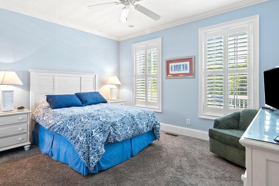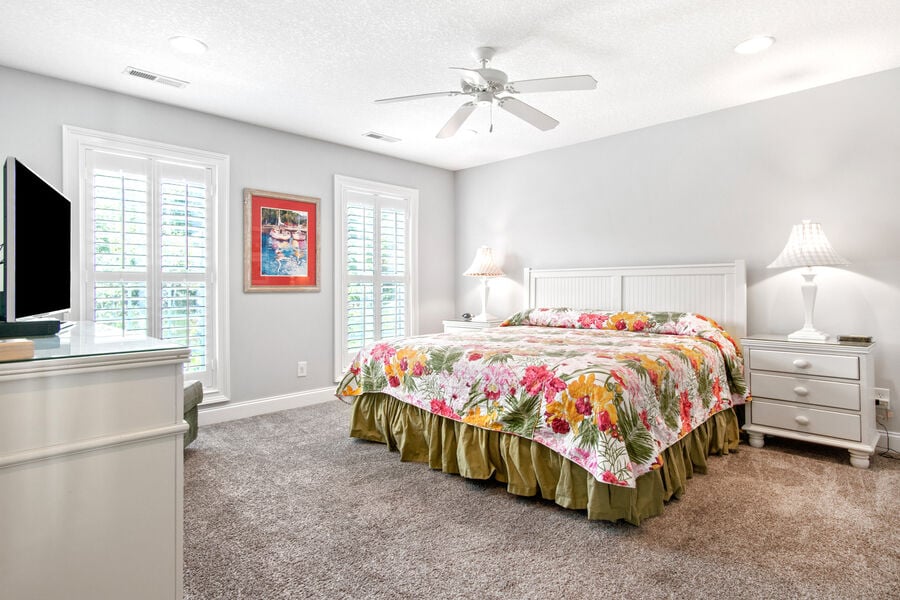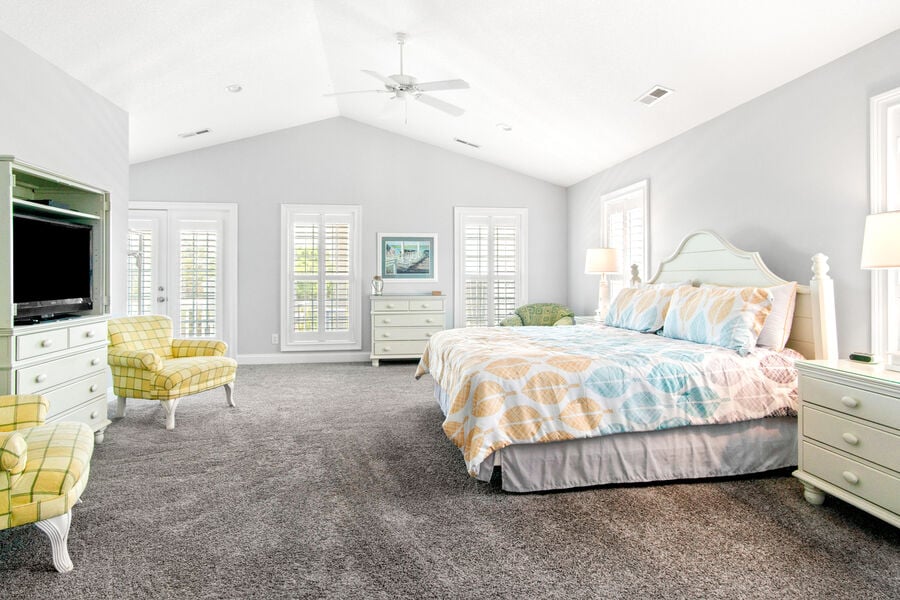 Accommodating up to twelve, 1063 boasts four bedrooms, including two king bedrooms upstairs and two more downstairs with single and king beds. A queen sofa sleeper and rollaway beds provide additional sleeping options. Please note, rollaway beds are more suitable for children. This non-smoking vacation home. Motorcycles and golf carts are allowed at this house.