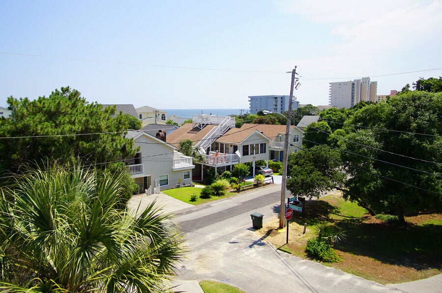 Soak in a bird's eye ocean view, offering tranquility just a block and a half from the sandy shores. Find relaxation and calm amidst the serene environment.