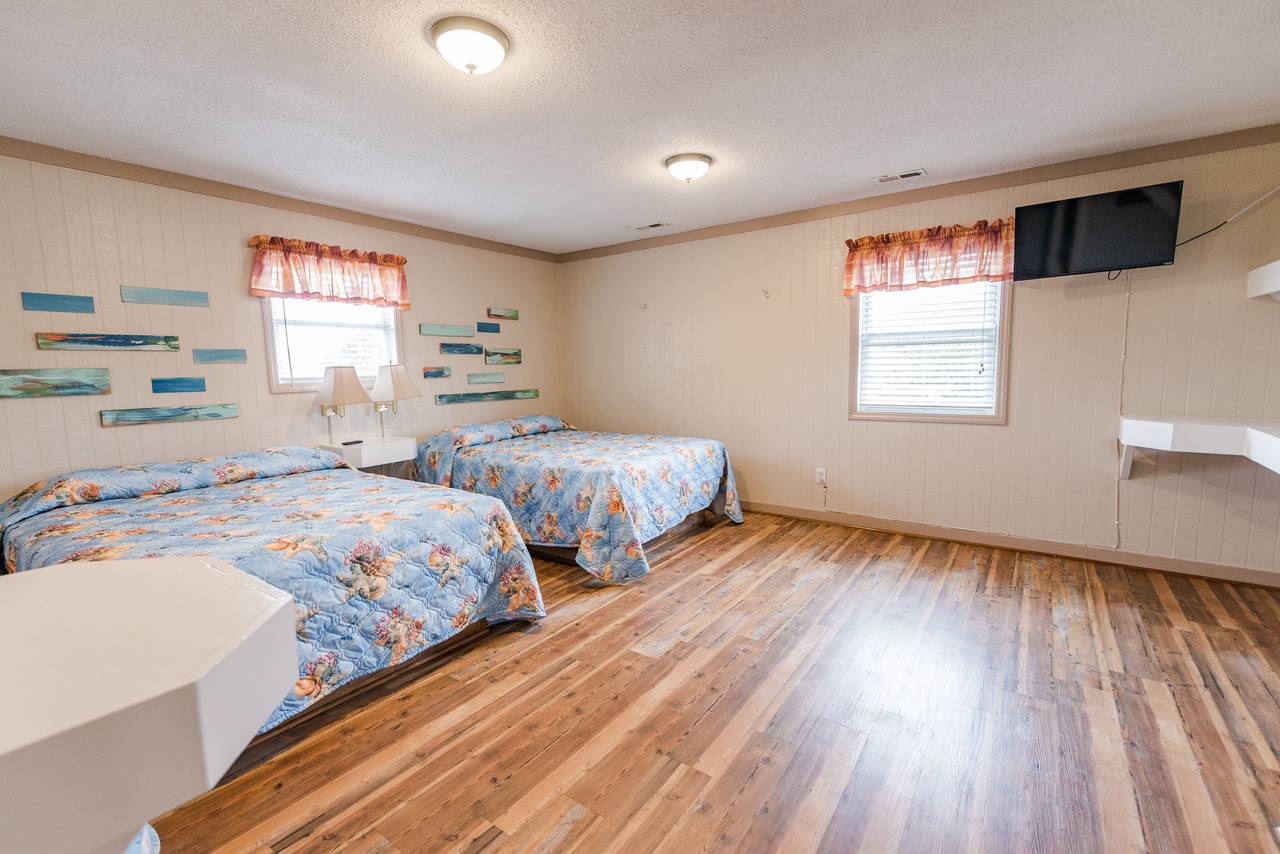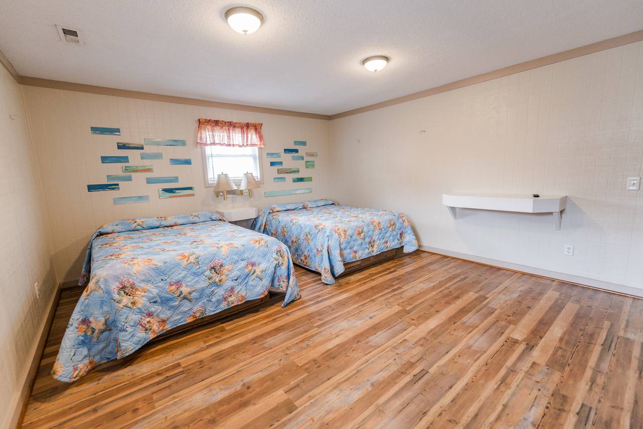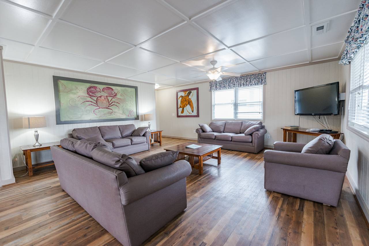 4109 is a five bedroom, three bath home that comfortably sleeps up to 20 people. This unit has a large living room and kitchen, with a big built in dining table. It is located less than 100 yards from the beach, and is part of a larger property made up of ten individual cottages. You can rent just one cottage, or if you have a larger team, you can rent all ten. Spend your days soaking up the sun, sand, and surf, and then come home and take a tip in the pool and play a fun game of basketball or volleyball. This unit has six televisions, including a new flat screen in the living room. Complete with ceramic tiles and hardwood floors, beautiful decorations, and free wireless internet access, you will have all the comforts of home, including a barbeque grill. This unit fills up fast, so make your reservation early. Get ready to come to North Myrtle Beach and experience all that the Grand Strand has to offer.