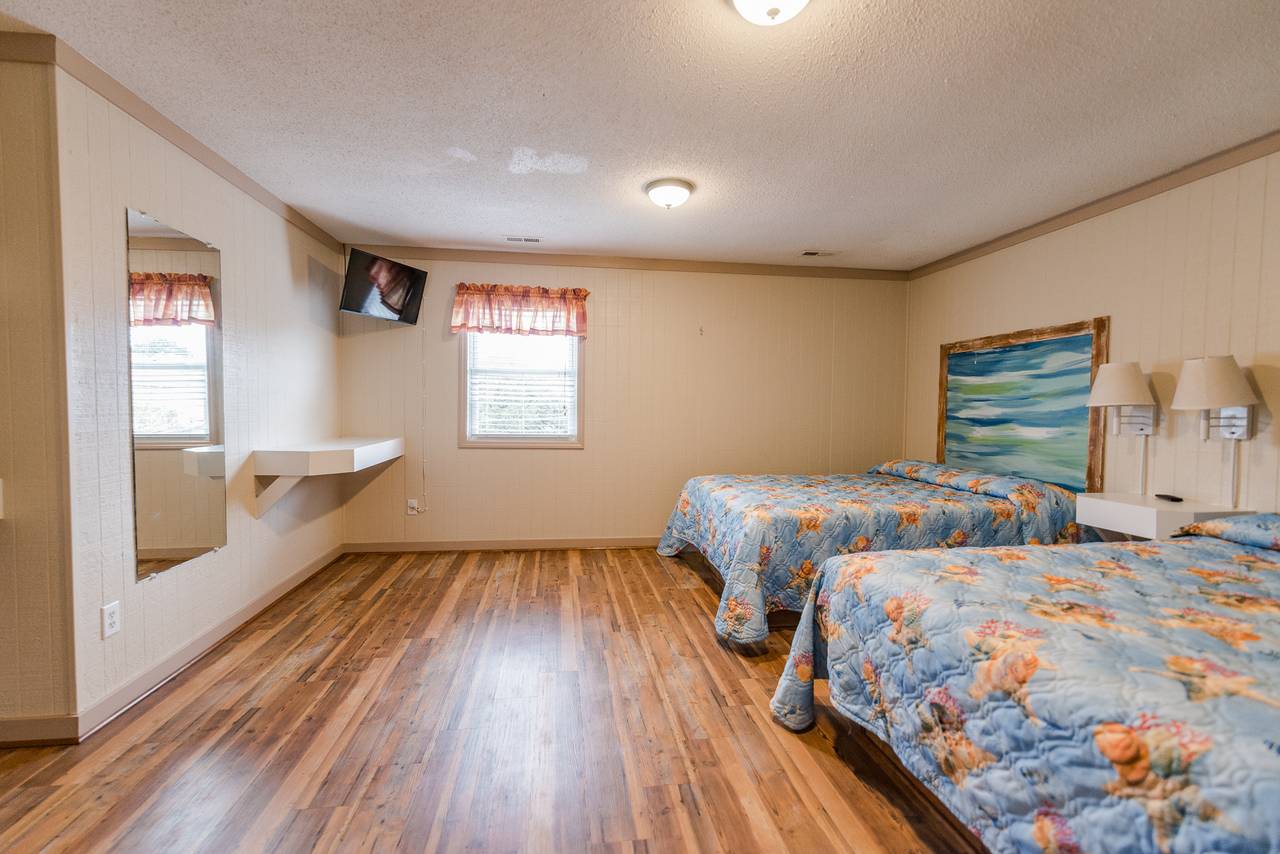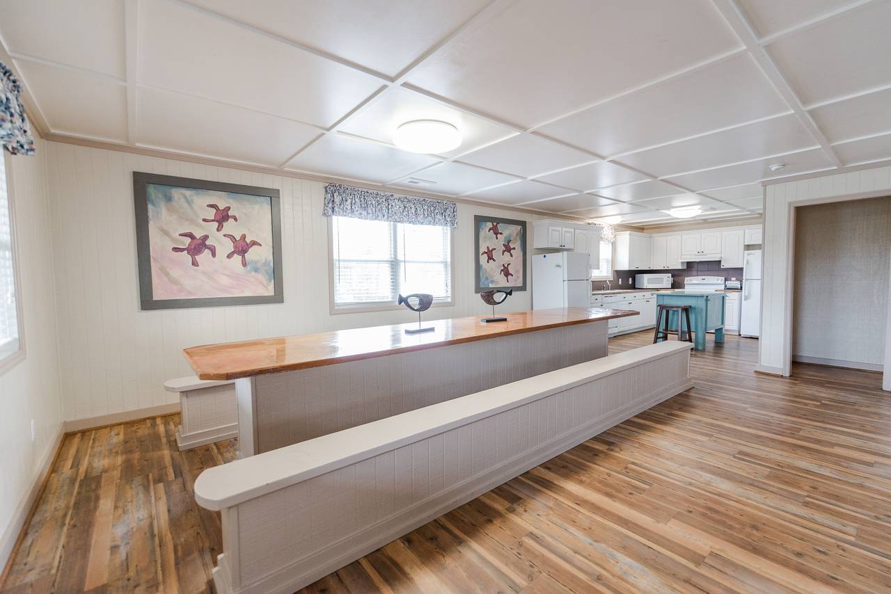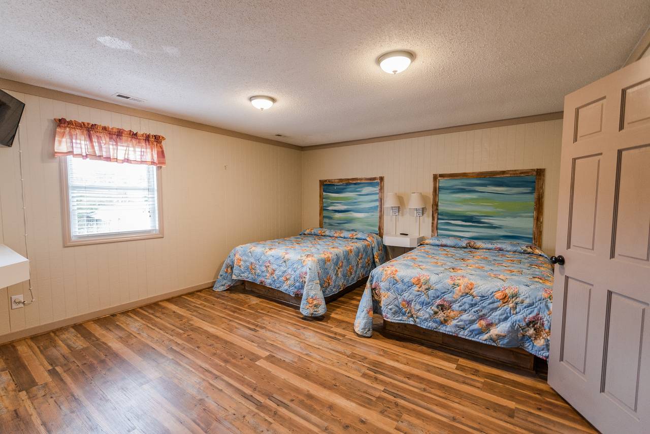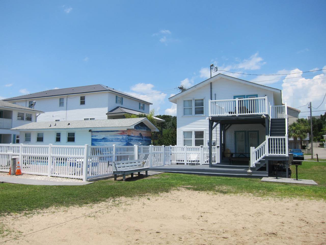 4109 is a five bedroom, three bath home that comfortably sleeps up to 20 people. This unit has a large living room and kitchen, with a big built in dining table. It is located less than 100 yards from the beach, and is part of a larger property made up of ten individual cottages. You can rent just one cottage, or if you have a larger team, you can rent all ten. Spend your days soaking up the sun, sand, and surf, and then come home and take a tip in the pool and play a fun game of basketball or volleyball. This unit has six televisions, including a new flat screen in the living room. Complete with ceramic tiles and hardwood floors, beautiful decorations, and free wireless internet access, you will have all the comforts of home, including a barbeque grill. This unit fills up fast, so make your reservation early. Get ready to come to North Myrtle Beach and experience all that the Grand Strand has to offer.