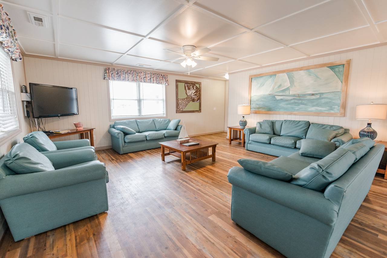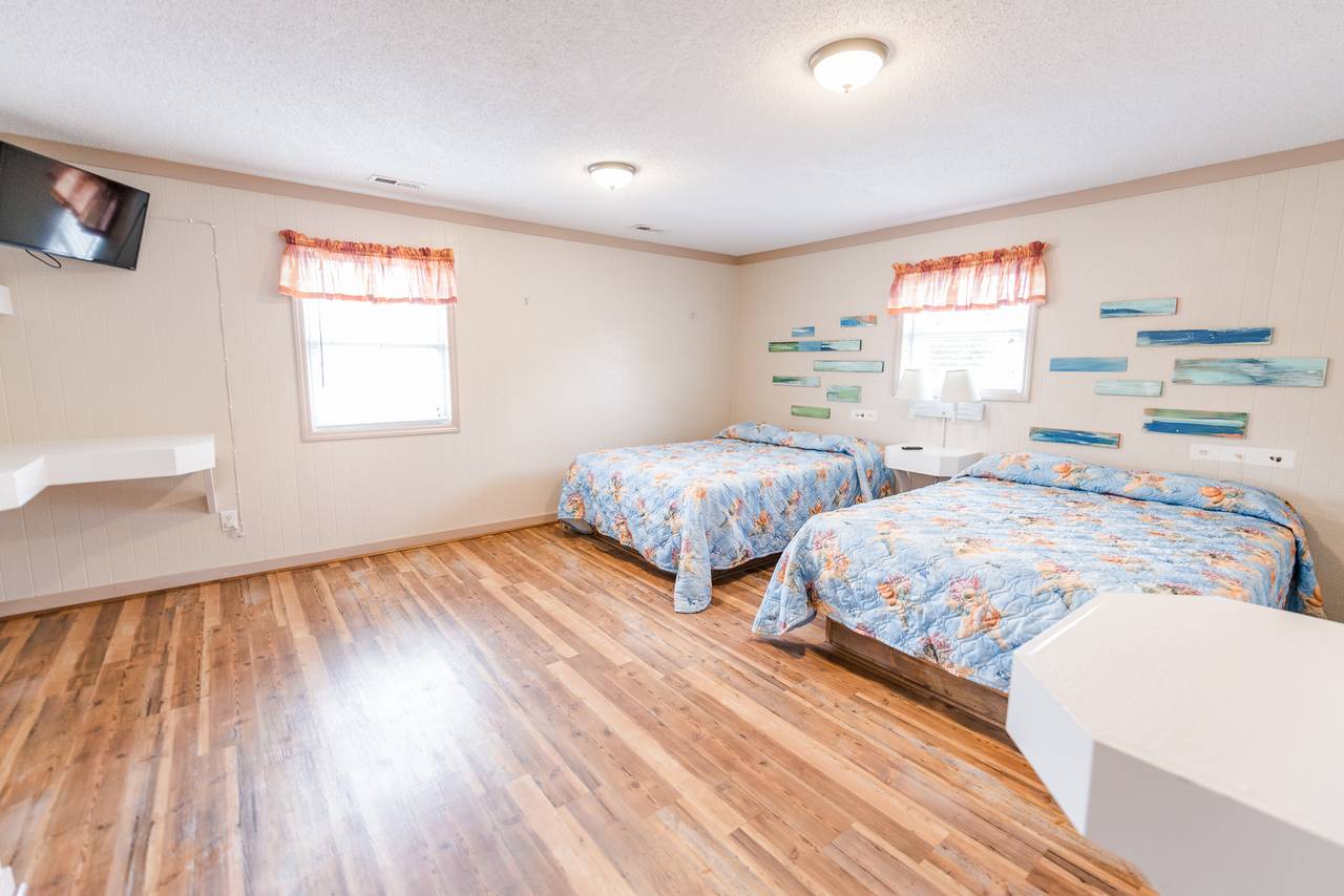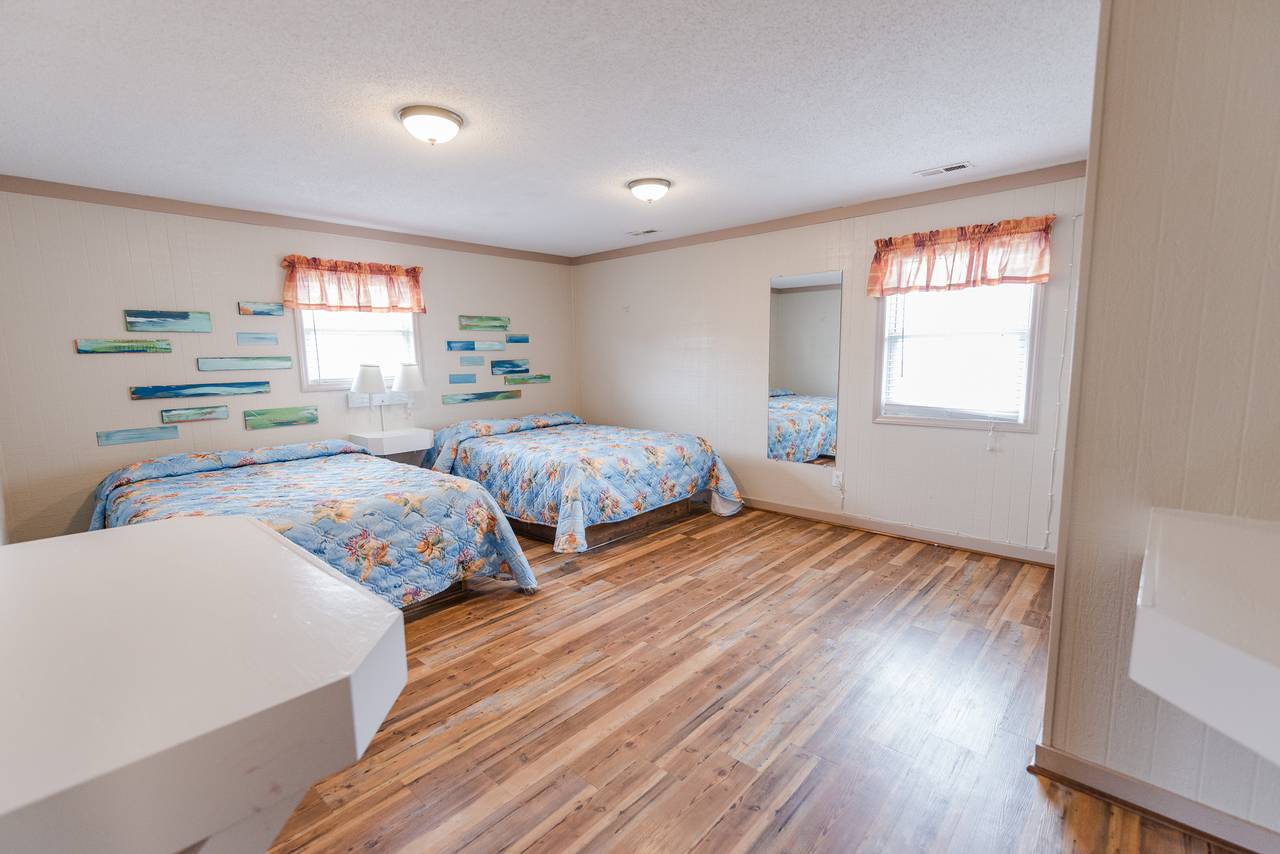 This is one of our most popular properties in North Myrtle Beach, and for good reason. This property, located less than 100 yards from the beach, is divided into 10 different cottages. You can rent one unit, or for larger teams, you can reserve all ten. 4110 is a beautiful five bedroom, three bath home that will comfortably sleep up to 20 people. The large living room and kitchen with built in dining table create the perfect gathering place. You will also find free wireless internet, six televisions, a DVD player, hardwood floors and ceramic tile. You can spend your day playing in the surf, sun, and sand, and when you have had your fill, come home and fire up a barbeque, swim in the pool, or play basketball or volleyball. If you feel like going out, you are close to all that the Grand Strand has to offer, including delicious restaurants, team activities, and fun night spots. This unit fills up fast, so make your reservation early and get ready for an unforgettable North Myrtle Beach vacation.