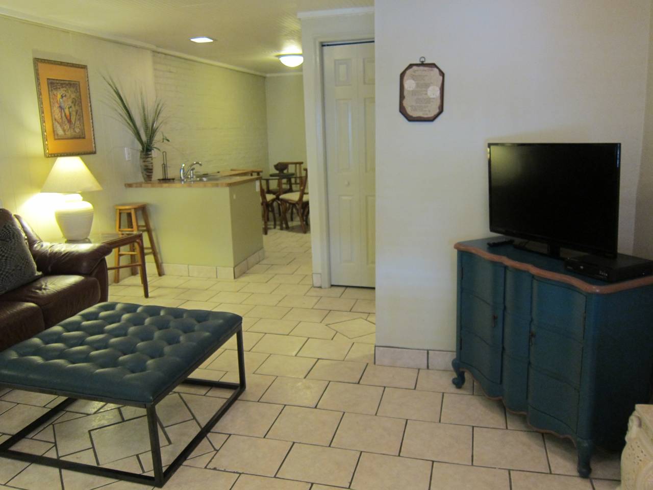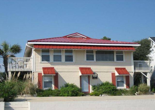 This unit is lower level, across the street from the beach and has free Wi-Fi service. It can be rented alone or with one or both other units depending on your team size. This unit has two bedrooms/one bath, fully equipped kitchen, living room, dining area, and access to washer/dryer and charcoal grills. Located on street-side /carport