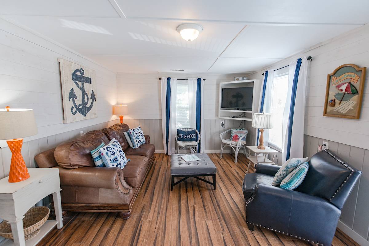 4117 is the upper level unit of a cozy North Myrtle Beach duplex, located one block from the stunning Atlantic Ocean. This beautiful home has four bedrooms and two bathrooms, and comfortably sleeps up to 14 people. A fully stocked kitchen, hardwood floors, beautiful furnishings, and four televisions will ensure that you have all the comforts of home. With delightful oak trees and breathtaking views from the sun deck, you will be able to truly soak in all that the Grand Strand has to offer. You can spend the day on the beach playing in the sand, watching the seagulls, and listening to the waves, and then come home to your fenced backyard with a pool, picnic tables, hammock and grills. Come to North Myrtle Beach and let Seaside Cottage be your home away from home.