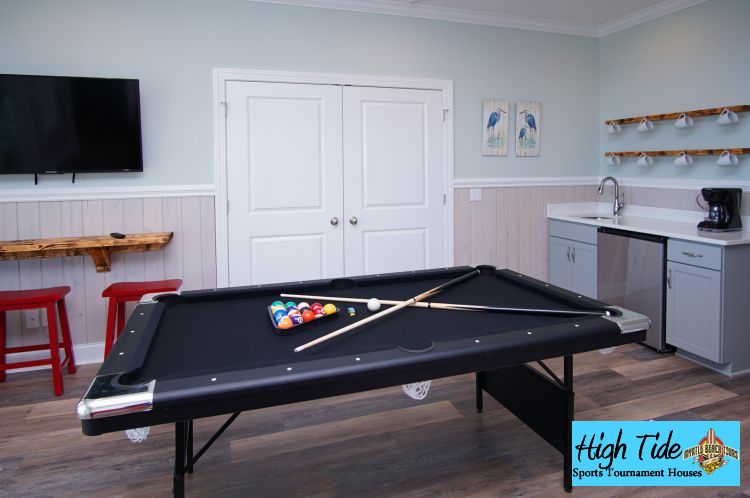 HAVE HOURS OF INDOOR FUN in the game room with its pool table and air hockey. Sleeping up to 24, it has two queen beds in each bedroom.