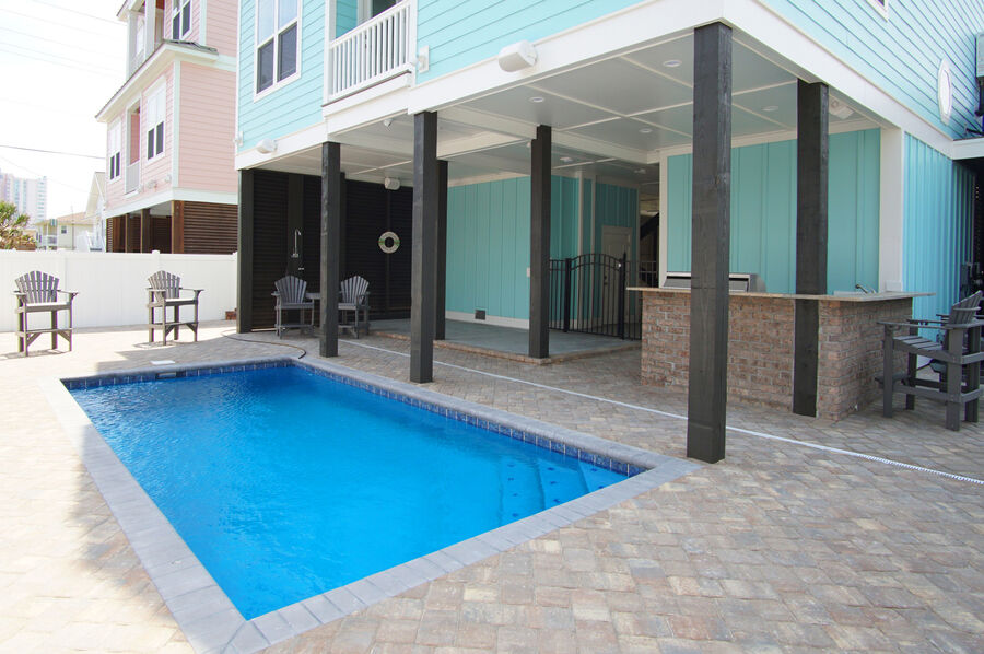 ENJOY CASUAL IN-HOME MEALS with the fully equipped kitchen. WITH A PRIVATE POOL and sundeck, you can have hours of backyard fun. The surf and sand of Cherry Grove's beach are just steps away across Ocean Boulevard. You'll have easy beach access and plenty of opportunities for fun in the water.