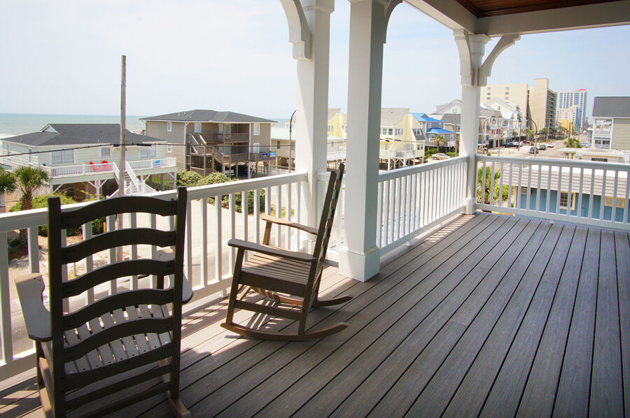 A deluxe six bedroom North Myrtle Beach vacation home. This NEW luxury home has six full baths and one half-bath. Relax in the comfortable living area or on the covered porch. A private elevator is provided for your convenience, too.