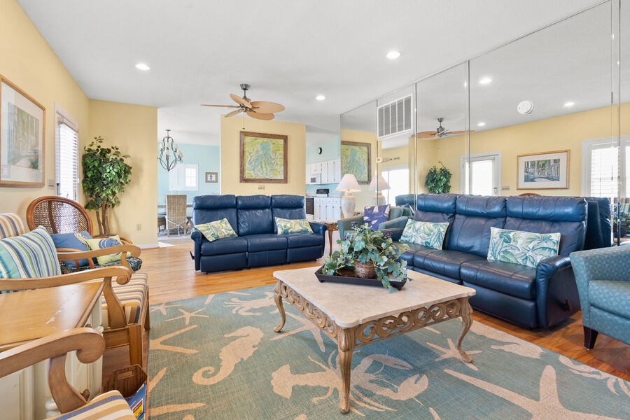 A FULLY-EQUIPPED kitchen makes preparing meals for a large group simple and the washer and dryer are added conveniences, Up to 20 people can comfortably occupy this home. Outdoor living is especially enjoyable at this home complete with multiple decks, patios, and even a shaded putting green. You'll have your own little piece of paradise.