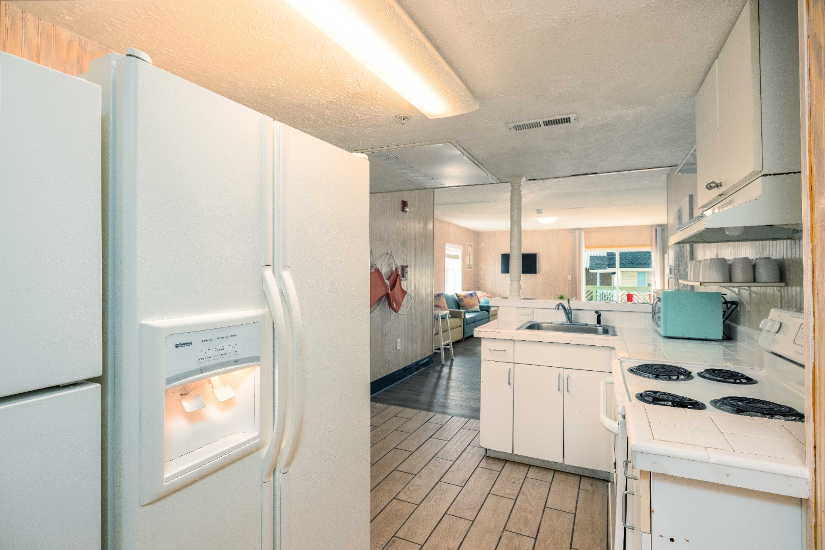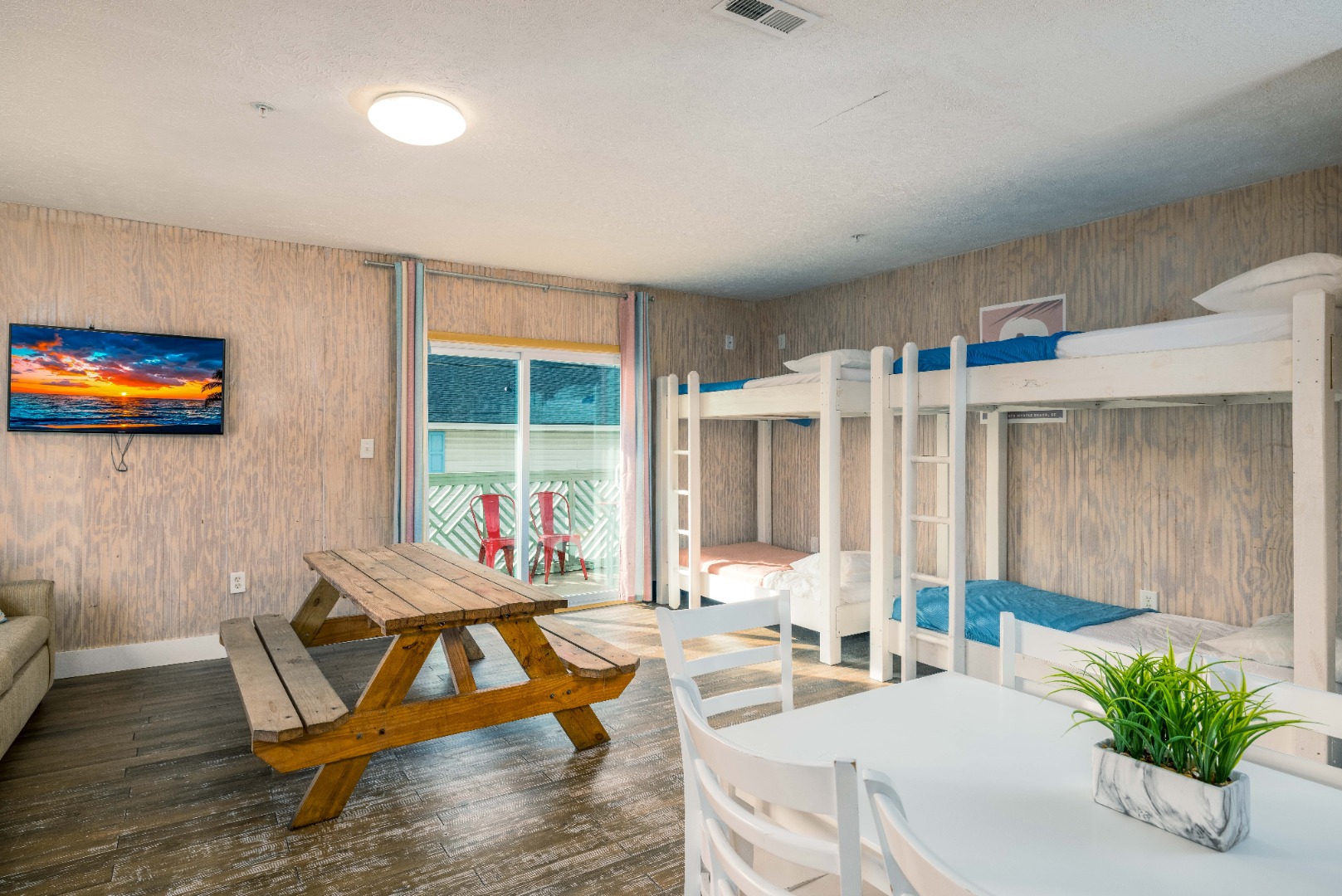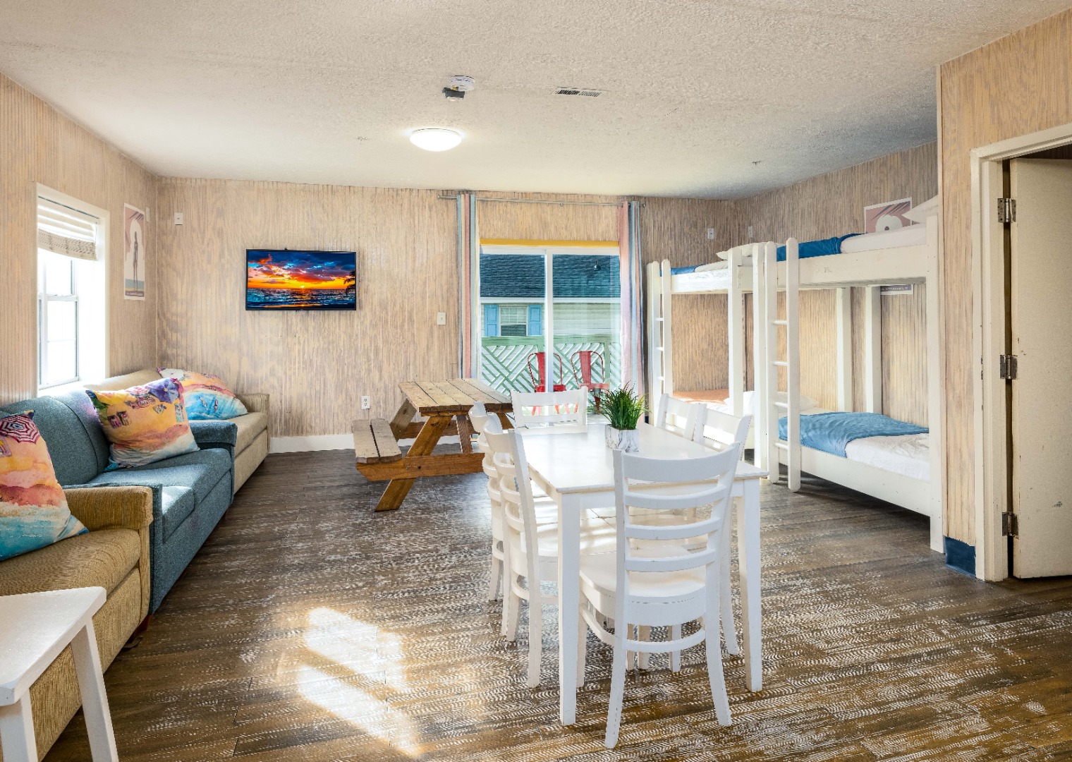 The bunkhouse setup means lots of beds, a full kitchen, and room to gather. Can be combined with other units for larger groups. The whole first floor inter connects.