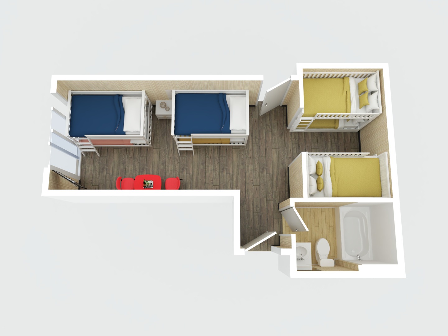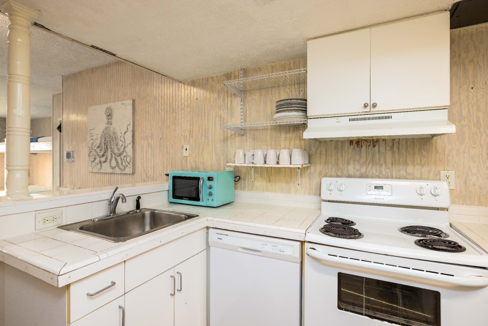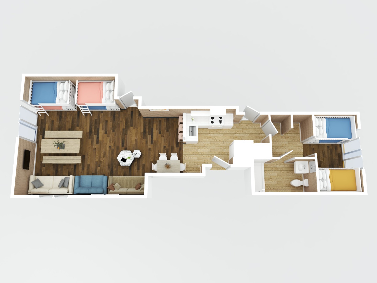 The bunkhouse setup means lots of beds, a full kitchen, and room to gather. Can be combined with other units for larger groups. The whole first floor inter connects.