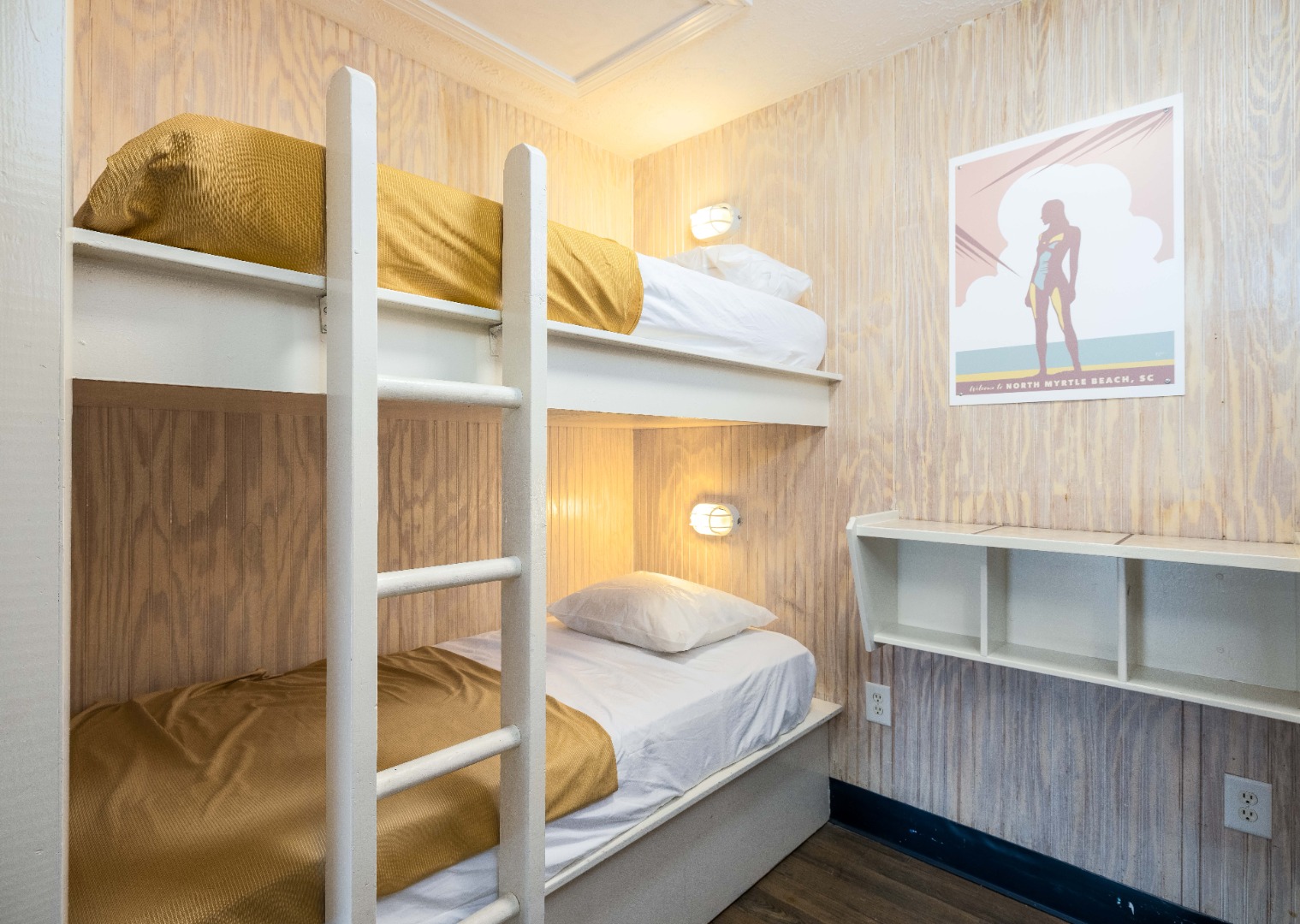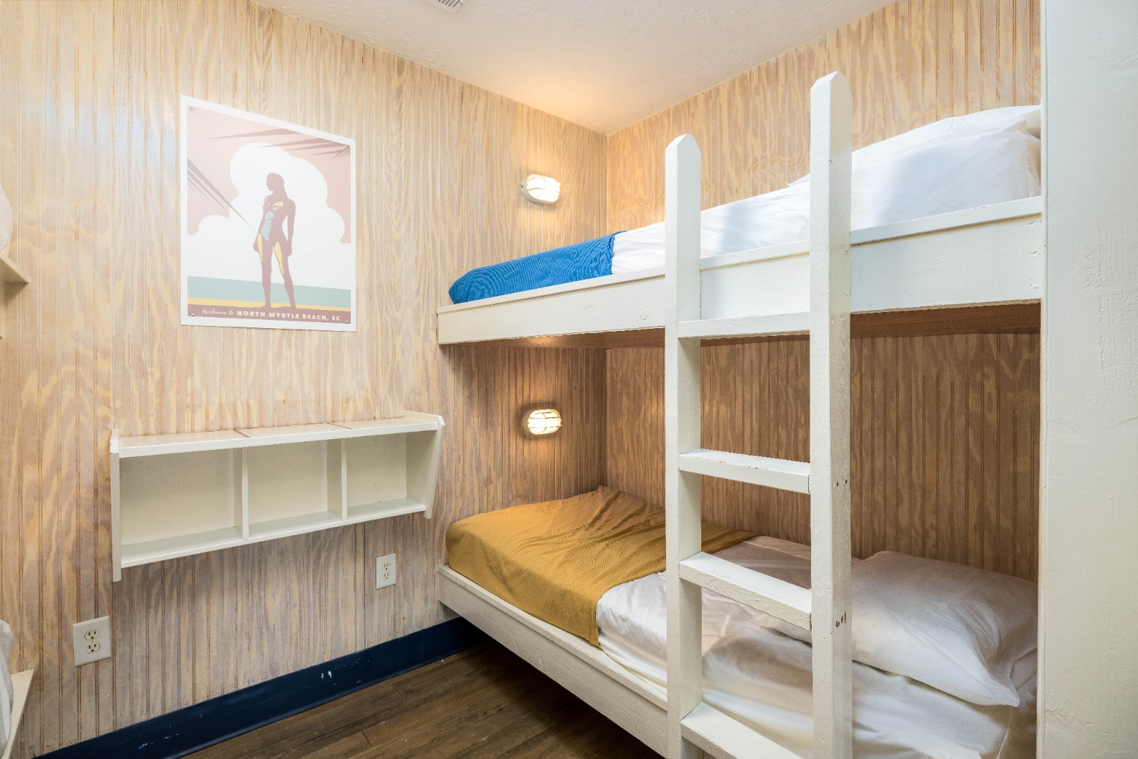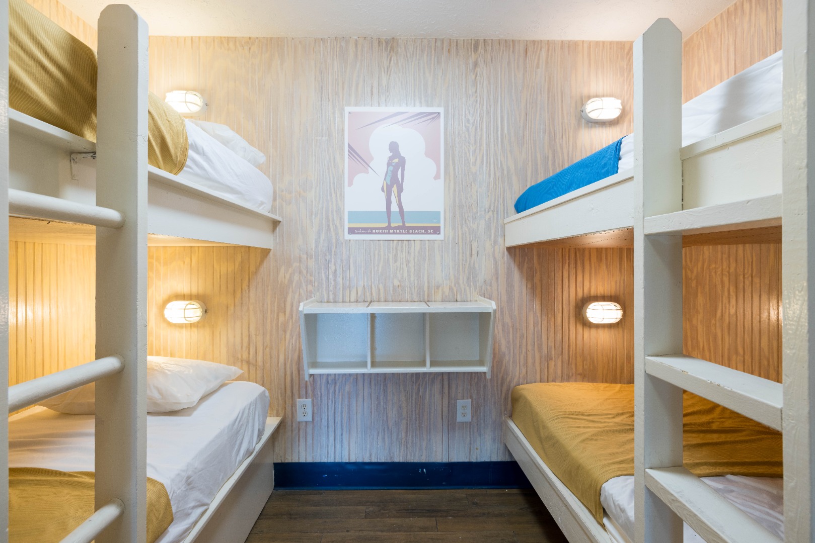 Just a block from restaurants,clubs and shops on Main Street in North Myrtle Beach, The Atlantic Slipper Suite in the Ocean Surf Club offers plenty of bunk space along with a full kitchen for your group.
