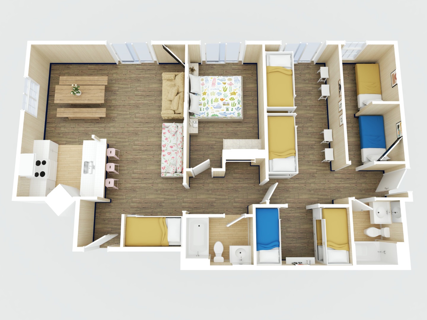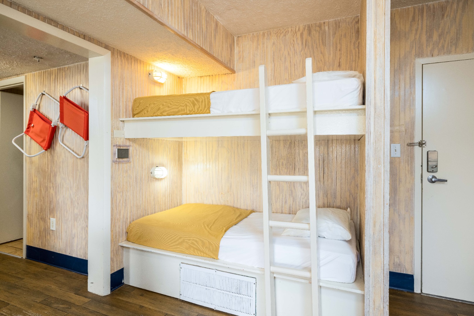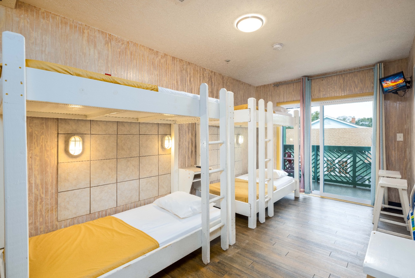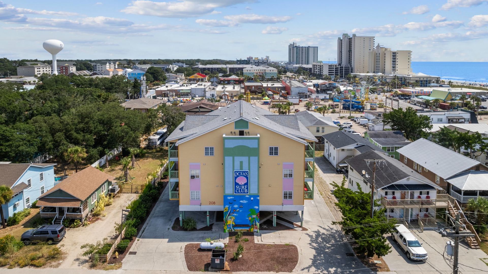 Just a block from restaurants,clubs and shops on Main Street in North Myrtle Beach, The Atlantic Slipper Suite in the Ocean Surf Club offers plenty of bunk space along with a full kitchen for your group.