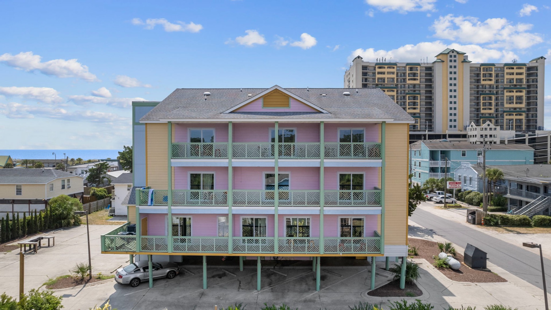 Just a short walk from Main Street and a half block from the beach, The Apple Murex Suite in the Ocean Surf Club features 3 queen beds 2 sets of bunks and sleep sofas for your comfort with a full kitchen and 2 bathrooms.