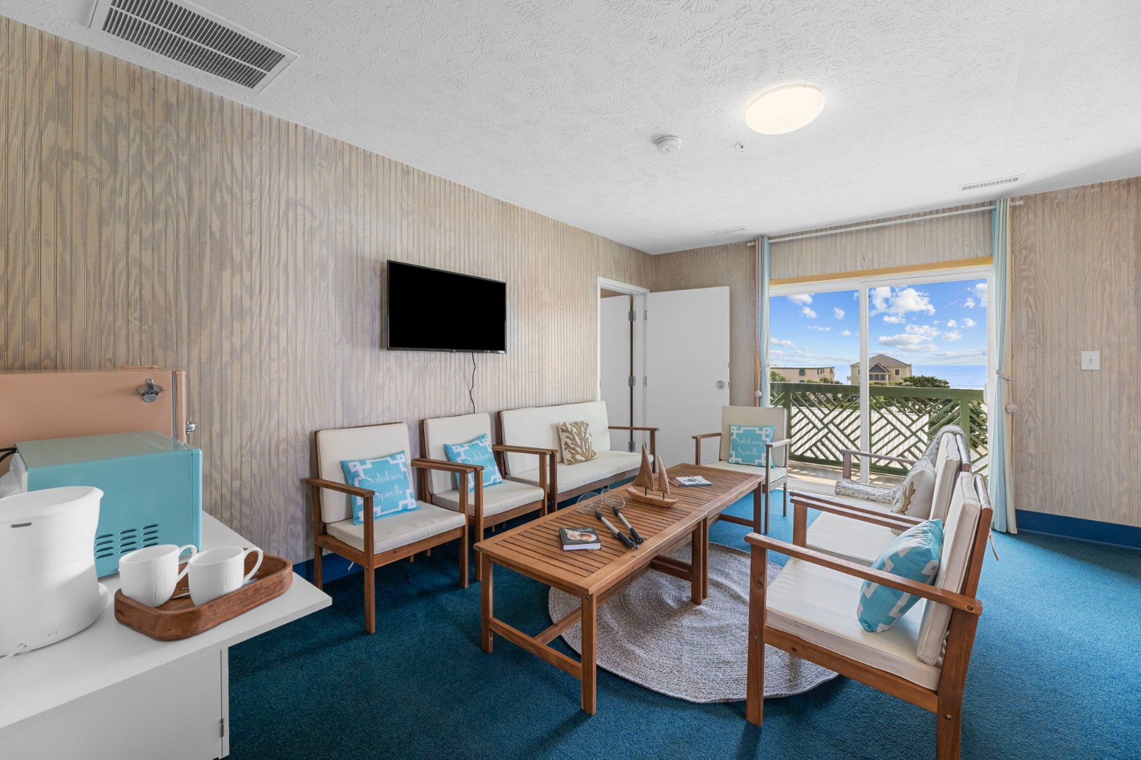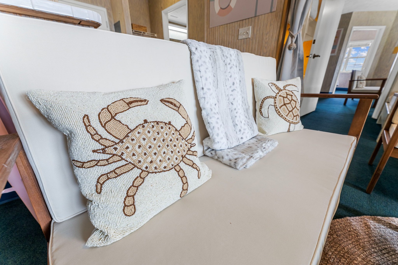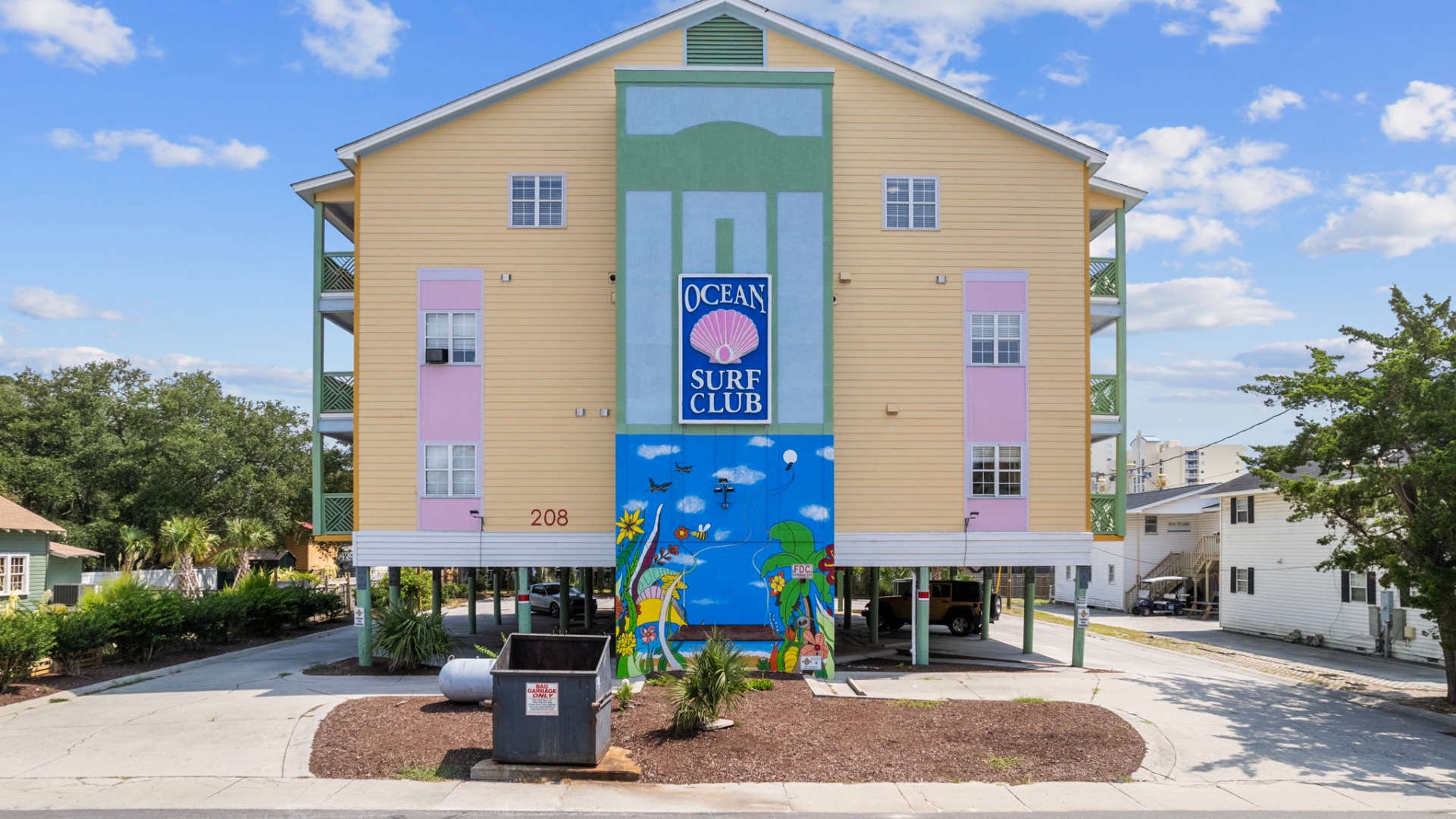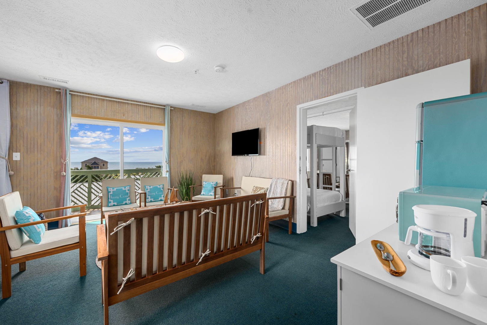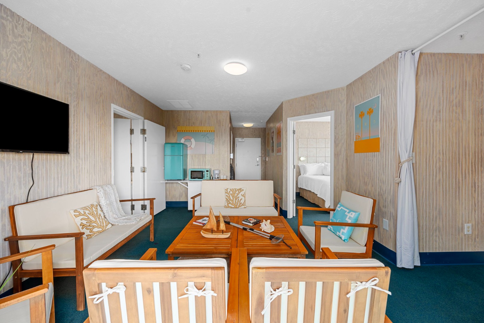 Lettered Olive Suite is just a half block from the beach and a block from the restaurants and shops of Ocean Drive. Two private bedrooms with queen beds and 4 sets of twin bunks and 6 twin moveable beds.