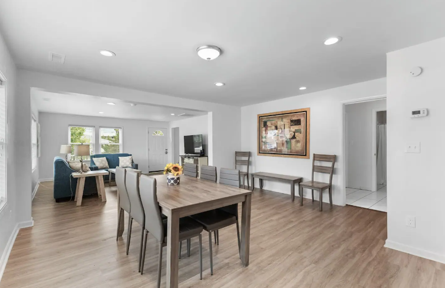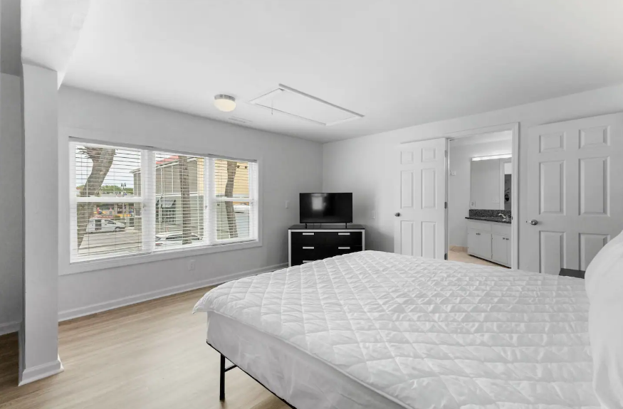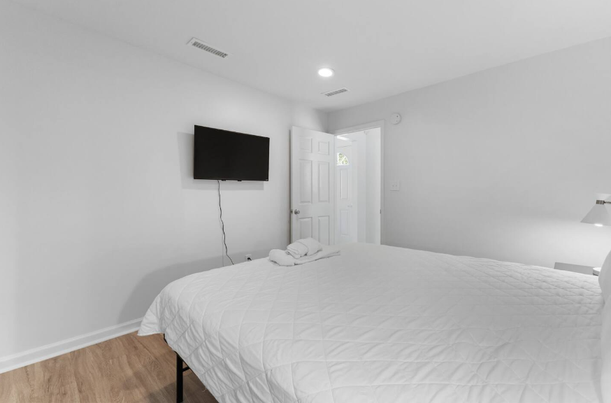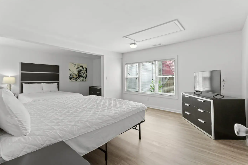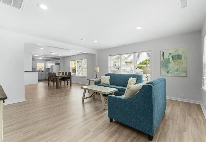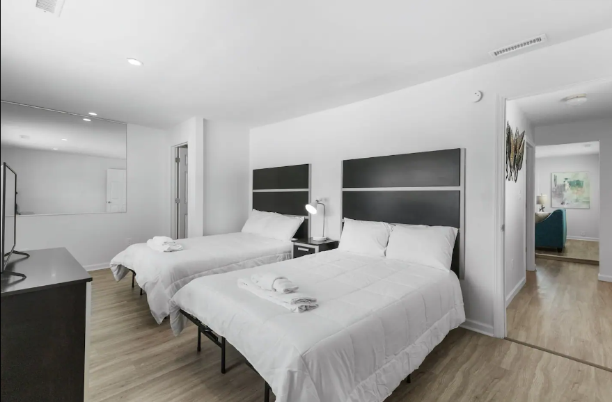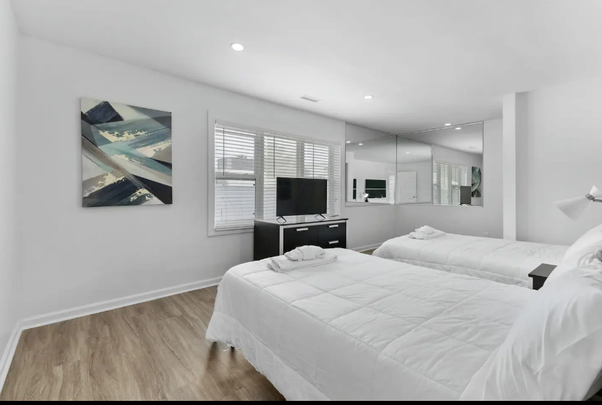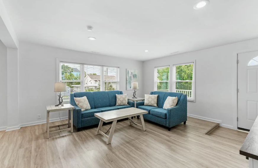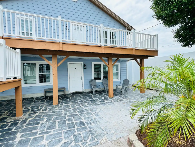 Ah, this is the place for the beachgoers seeking some Mediterranean themed seclusion. Whether you want to walk around toga clad or not, the lower unit of the Grecian Getaway has a lovely garden entrance that augments its already quiet beauty. The first bedroom has a queen bed sleeping two. The second room has a single double bed that comfortably sleeps two. The third bedroom has two double beds to sleep four. Plus there is a sofa bed in the common living room. So, gather up to ten of your fellow Greeks for the lower level, and if you wish, the upper level will sleep eight more, be they gods or goddesses.