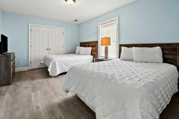 This duplex combined sleeps 12 on one side and 10 on the other. (22 total)