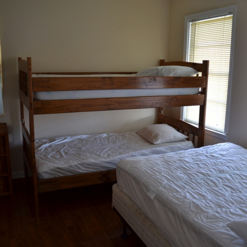 double. double and set of bunks. triman. double & bunks. 2 sets of bunks. Must bring blankets, sheets, towels. ******no blankets or spreads are provided.