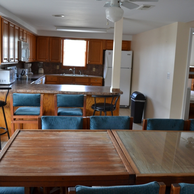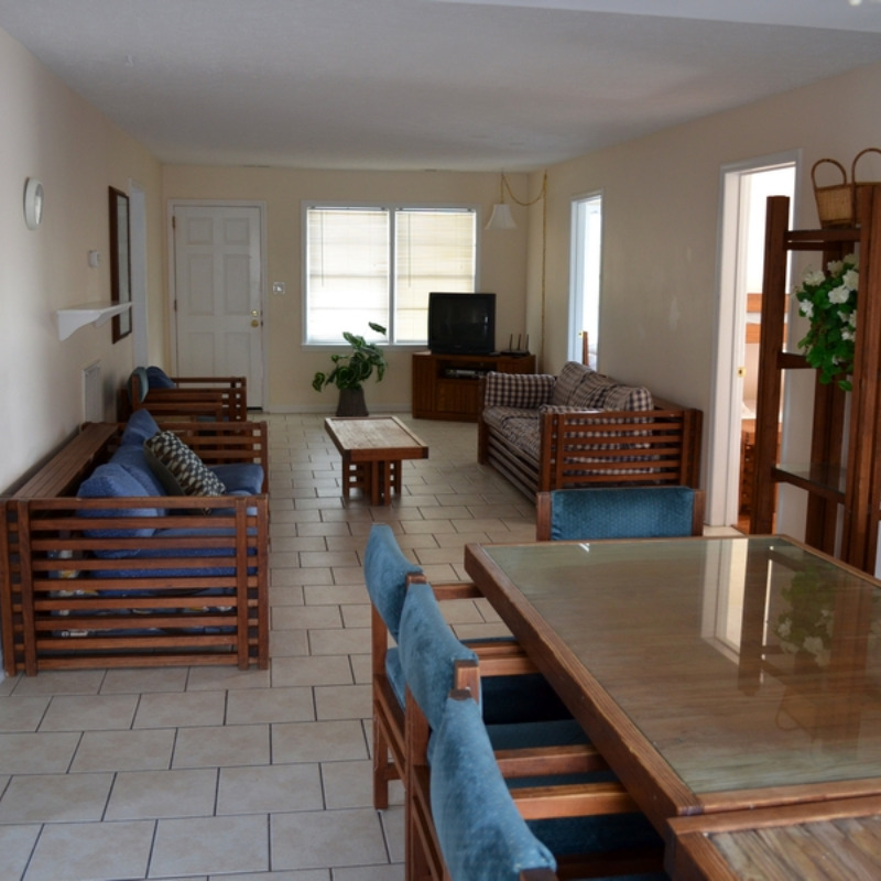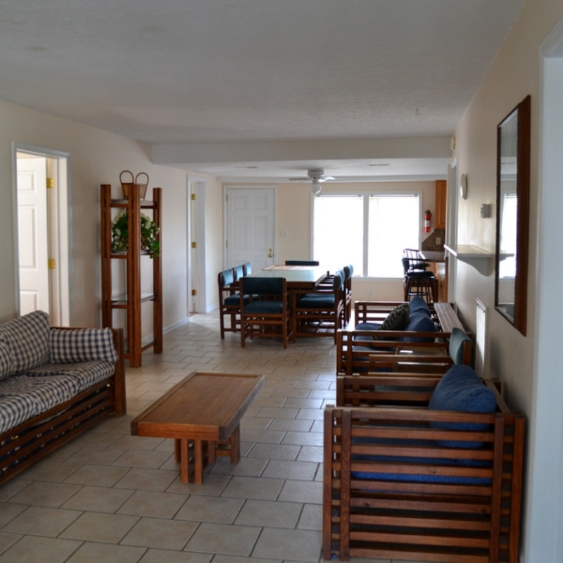 The Morgan House 2A will sleep a small army of 17, with five bedrooms, two full bathrooms, living room, dining room, and fully equipped kitchen. And if the dwellers of this palace long to see the beach, be it morning or evening, but lack the energy, they can merely step out onto the front porch, and take in a seagull’s view of the waves. But, when the beholders of the seashore grow tired of their view, they can lay back on the comfy seating arrangements found in and around the house, as well as the quality mattresses.