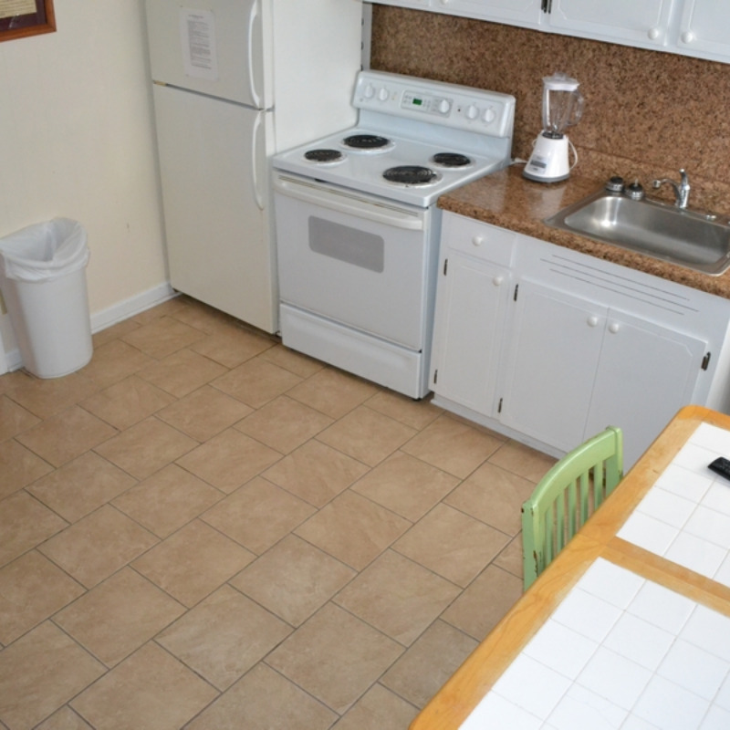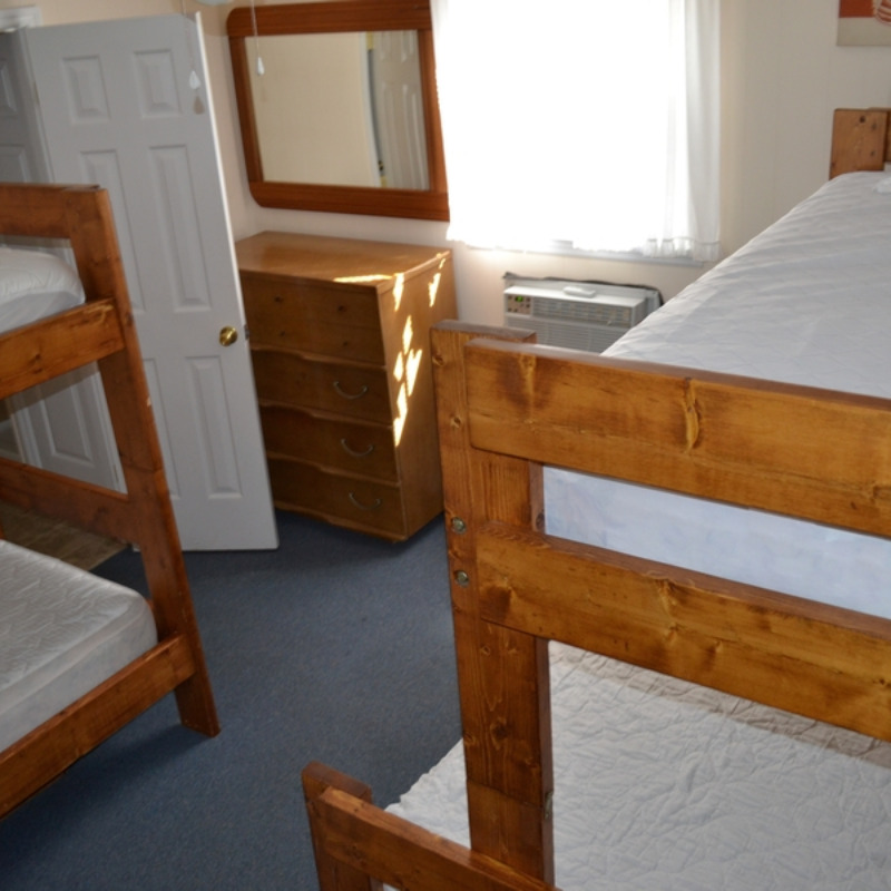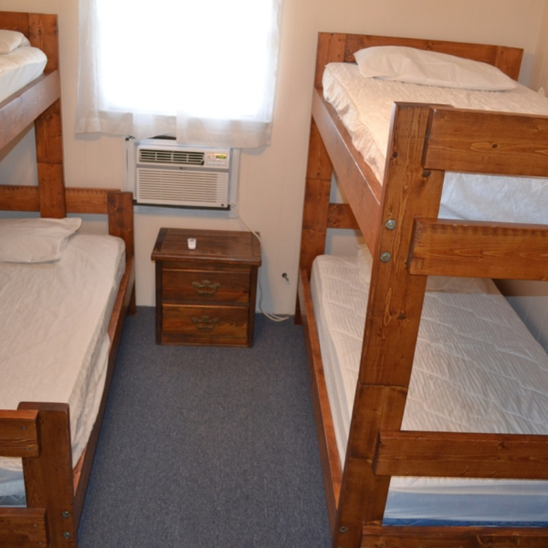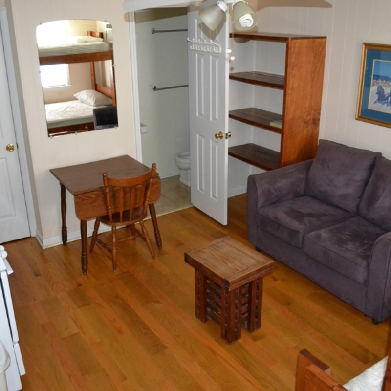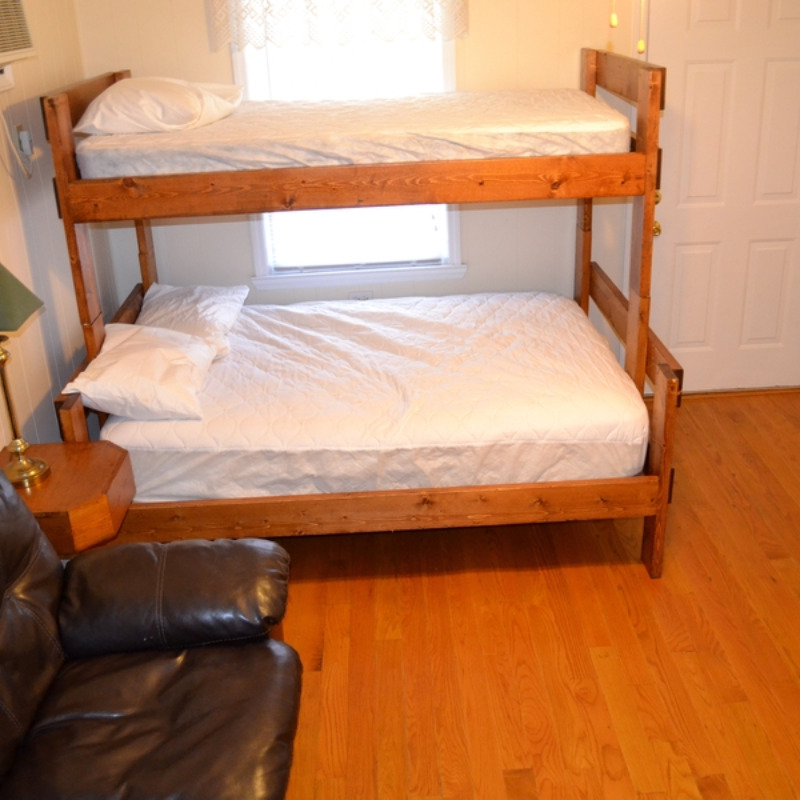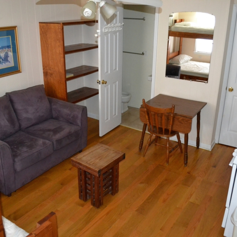 All Efficiency Units have a kitchen including stove/oven, small refrigerator, microwave, coffee pot, toaster, pots and pans, utensils, plates, etc. as well as a small sofa, cable TV and bunkbed w/ double bed on bottom and a single bed on top.