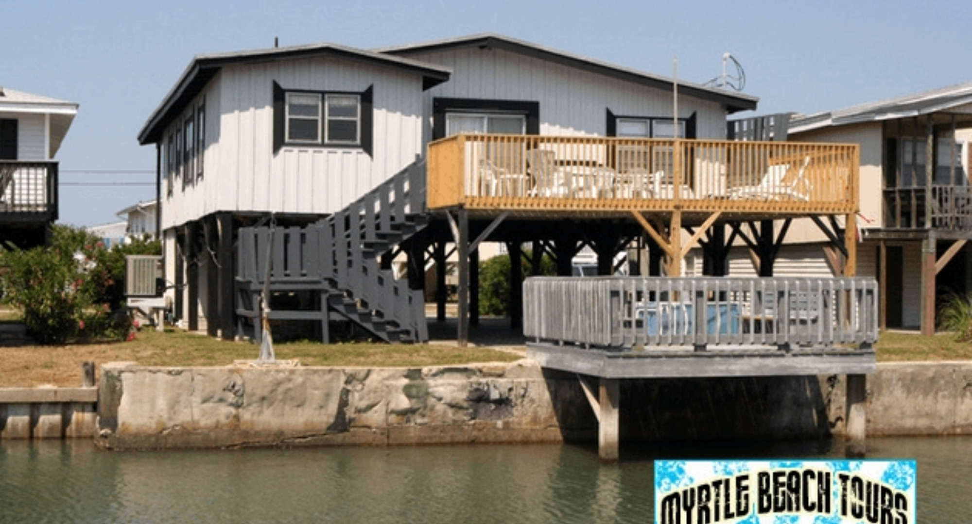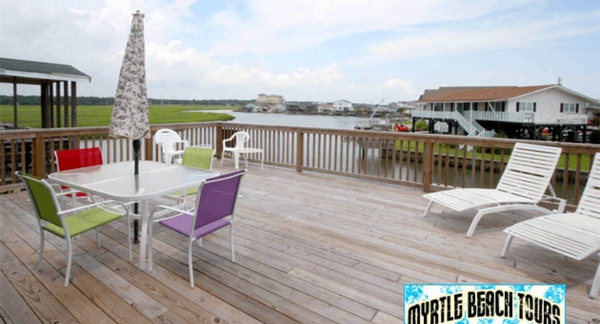 This Channel house with its nautical decor, sets the tone for a fun and exciting North Myrtle Beach vacation. You'll love the wonderful view of the salt marsh and creeks of the Cherry Grove Inlet. Relax in a porch rocker or swing and watch the snowy egrets and brown pelicans feed and the fiddler crabs scurry for cover. There is a ground-level laundry room and a deck on the channel with a built-in fisherman's sink for cleaning the day's catch or rinsing your sea shell collection! And you'll be just a short two blocks from the beach. The House sleeps up to ten and has: BR1-1 King; BR2-1 Queen; BR3-2 Doubles; BR4-2 Singles. This baby now has Free WIFI so you can stay conveniently connected! This is a non-smoking vacation accommodation.